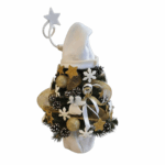 Tento bielozlatý mini stromček s mikulášskou čiapkou je dokonalou voľbou pre tých, ktorí milujú eleganciu, jemnosť a sviatočný lesk. Kombinácia bielych a zlatých ozdôb pôsobí mimoriadne harmonicky a luxusne, pričom stromček krásne doplní moderný aj tradičný interiér.